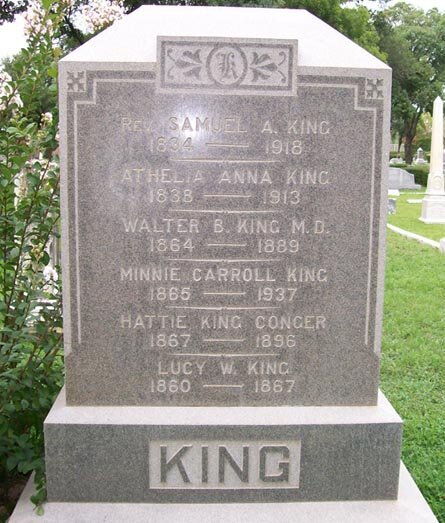 Samuel Alexander King is buried at Oakwood Cemetery, Waco, Texas.