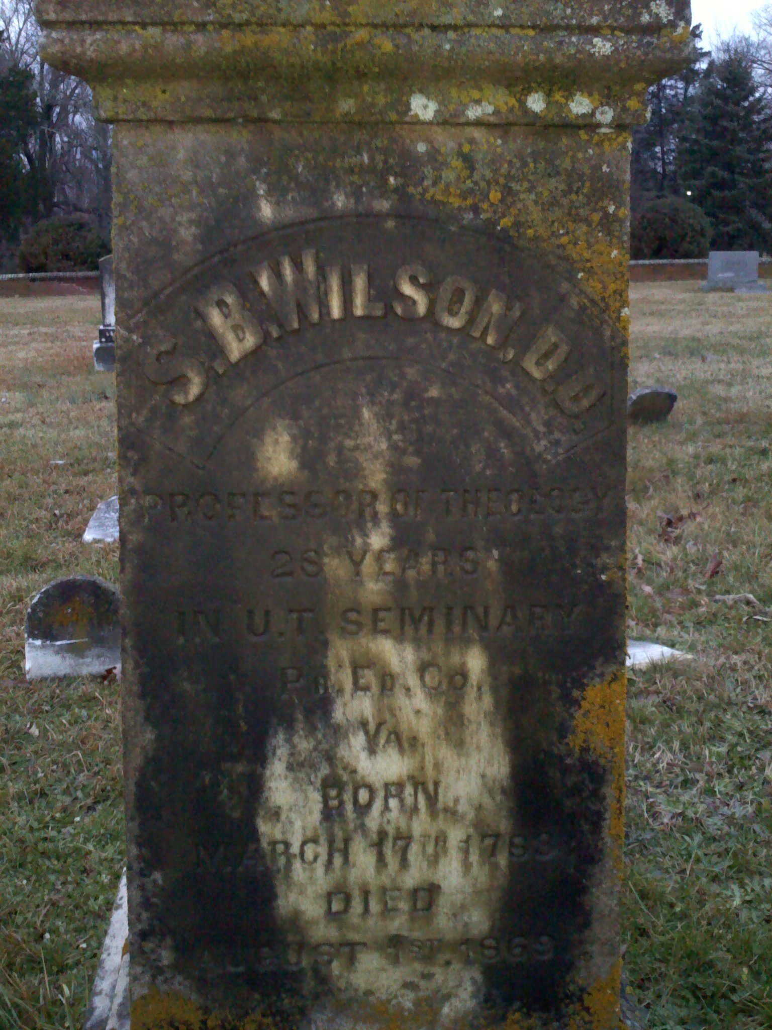 Samuel B. Wilson is buried at Union Presbyterian Seminary Cemetery, Hampden Sydney, Virginia.