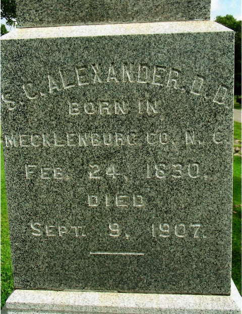 Samuel Caldwell Alexander (1830–1907) was a nineteenth-century American Presbyterian minister born in Mecklenburg County, North Carolina, who served multiple congregations in the Southern Presbyterian Church. He is best documented as a long-time pastor of churches such as Thyatira and Back Creek, where he was active in preaching, pastoral leadership, and periods of congregational growth. Alexander was also a church historian, authoring published historical addresses and congregational histories that preserved the local and ecclesiastical memory of Southern Presbyterianism.