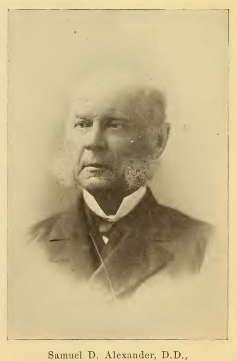 Samuel Davies Alexander (May 3, 1819 – October 26, 1894) was an American Presbyterian minister born in Princeton, New Jersey, the son of clergyman Archibald Alexander, who graduated from Princeton College and Princeton Theological Seminary before being ordained in 1847. After early pastorates in Port Richmond, Philadelphia and Freehold, New Jersey, he served for many years (1855–1893) as pastor of the Phillips Presbyterian Church (formerly Fifteenth Street Church) in New York City, and was awarded an honorary S.T.D. by Washington College in 1862. Alexander also authored historical and ecclesiastical works such as Princeton College during the Eighteenth Century(1872) and History of the Presbyterian Church in Ireland.