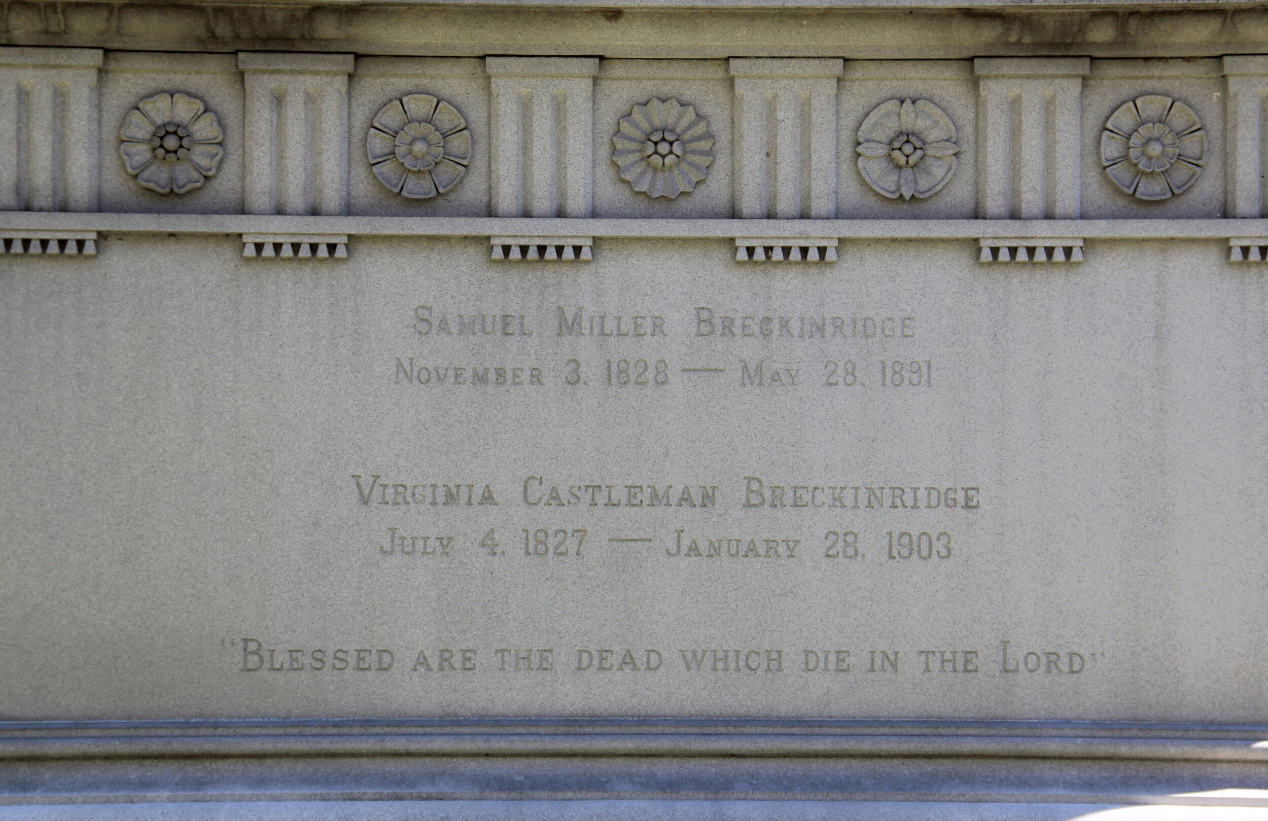 Samuel Miller Breckinridge is buried at Bellefontaine Cemetery, Saint Louis, Missouri.