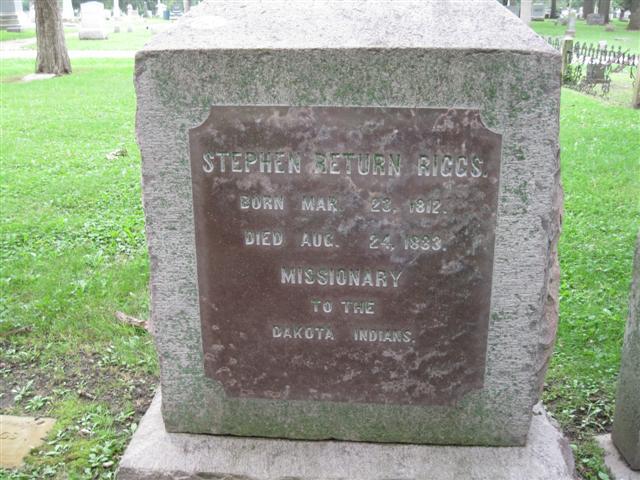Stephen Return Riggs is buried at Oakwood Cemetery, Beloit, Wisconsin.
