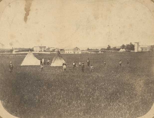 Hazelwood Mission in Yellow Medicine County, Minnesota (pictured here c. 1860) was organized by Rev. Riggs.