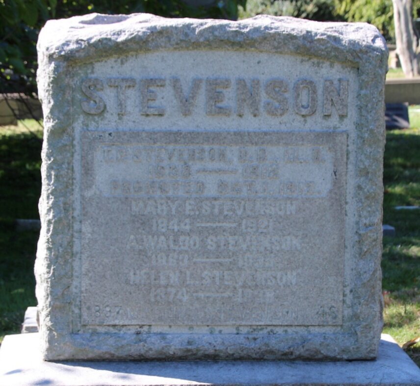Thomas Patton Stevenson is buried at Woodlands Cemetery, Philadelphia, Pennsylvania.