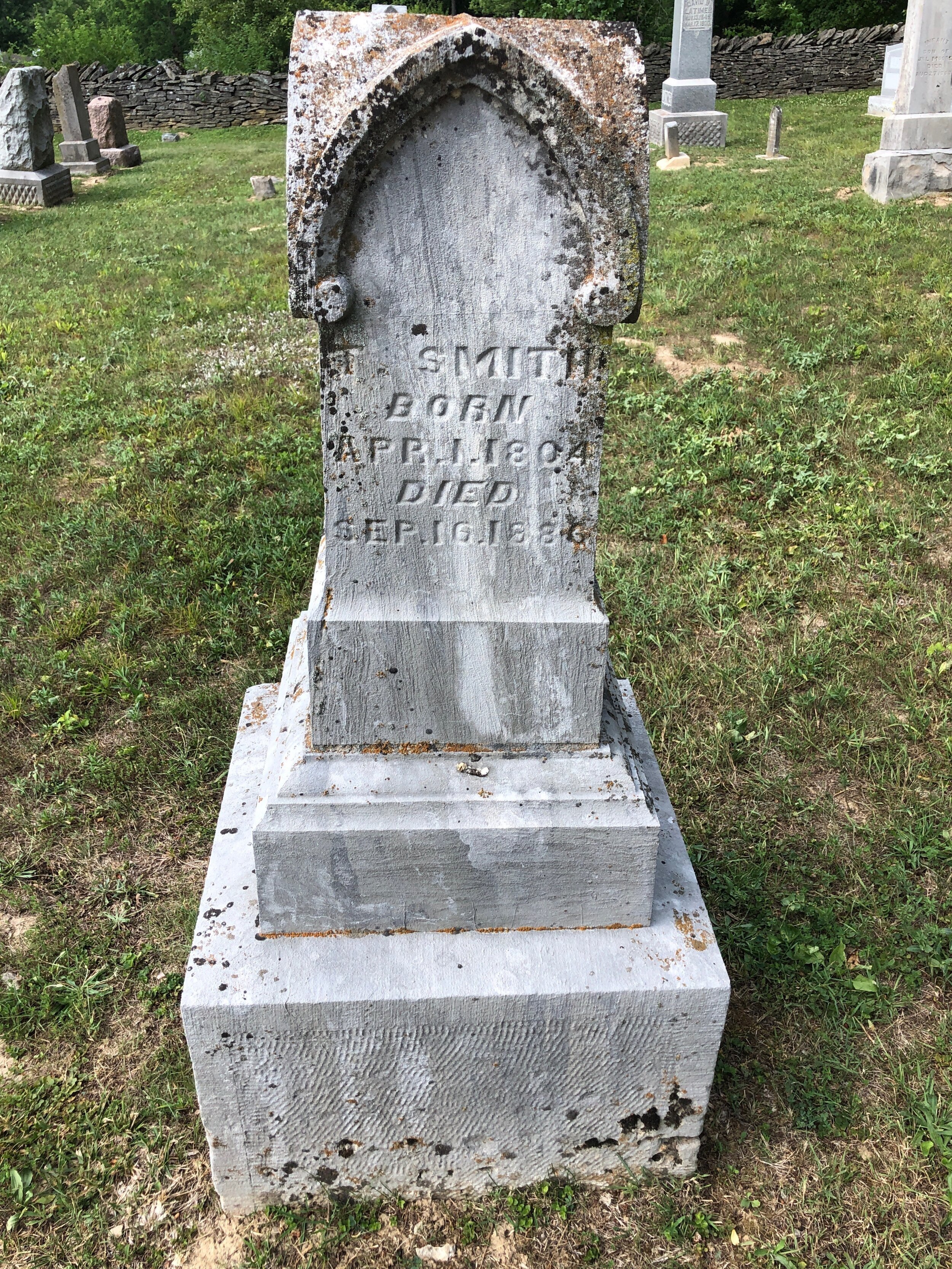 Thomas Smith is buried at Covenanter Cemetery, Bloomington, Indiana.