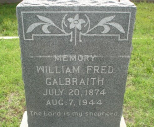 William Fred Galbraith is buried at Odd Fellows Cemetery, Denton, Texas.