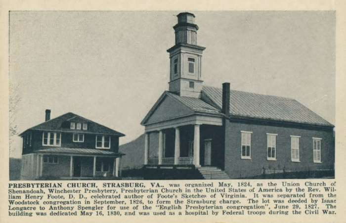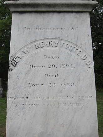 William Henry Foote is buried at Indian Mound Cemetery, Romney, West Virginia.William Henry Foote organized the Presbyterian Church in Strasburg, Virginia in 1824.Source: R.B. Woodworth,A History of the Presbytery of Winchester (Synod of Virginia)(1947).