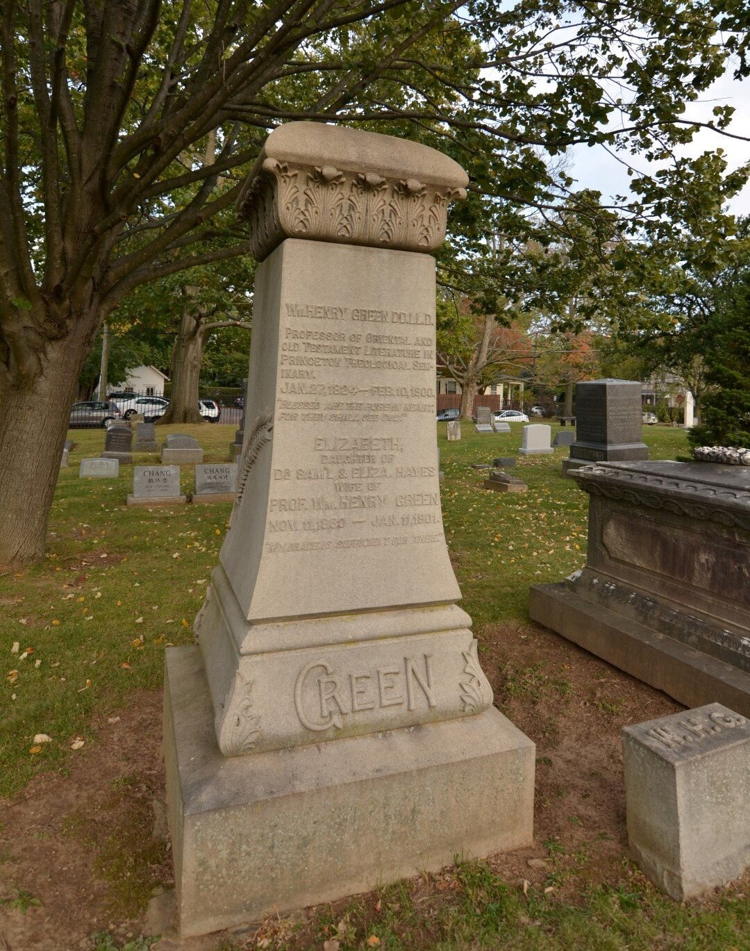 William Henry Green is buried at Princeton Cemetery, Princeton, New Jersey.