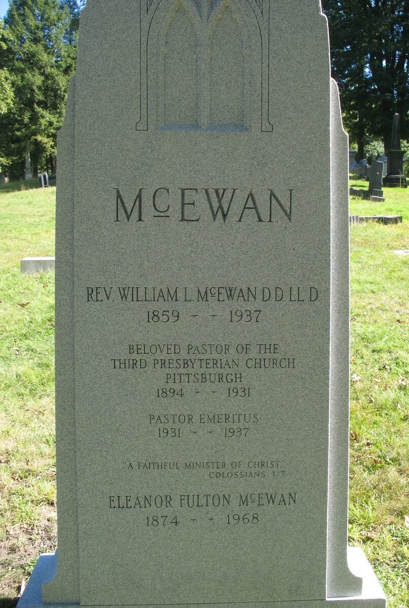 William Leonard McEwan is buried at Allegheny Cemetery, Pittsburgh, Pennsylvania.