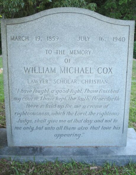 William Michael Cox is buried at Baldwyn Masonic Cemetery, Baldwyn, Mississippi.