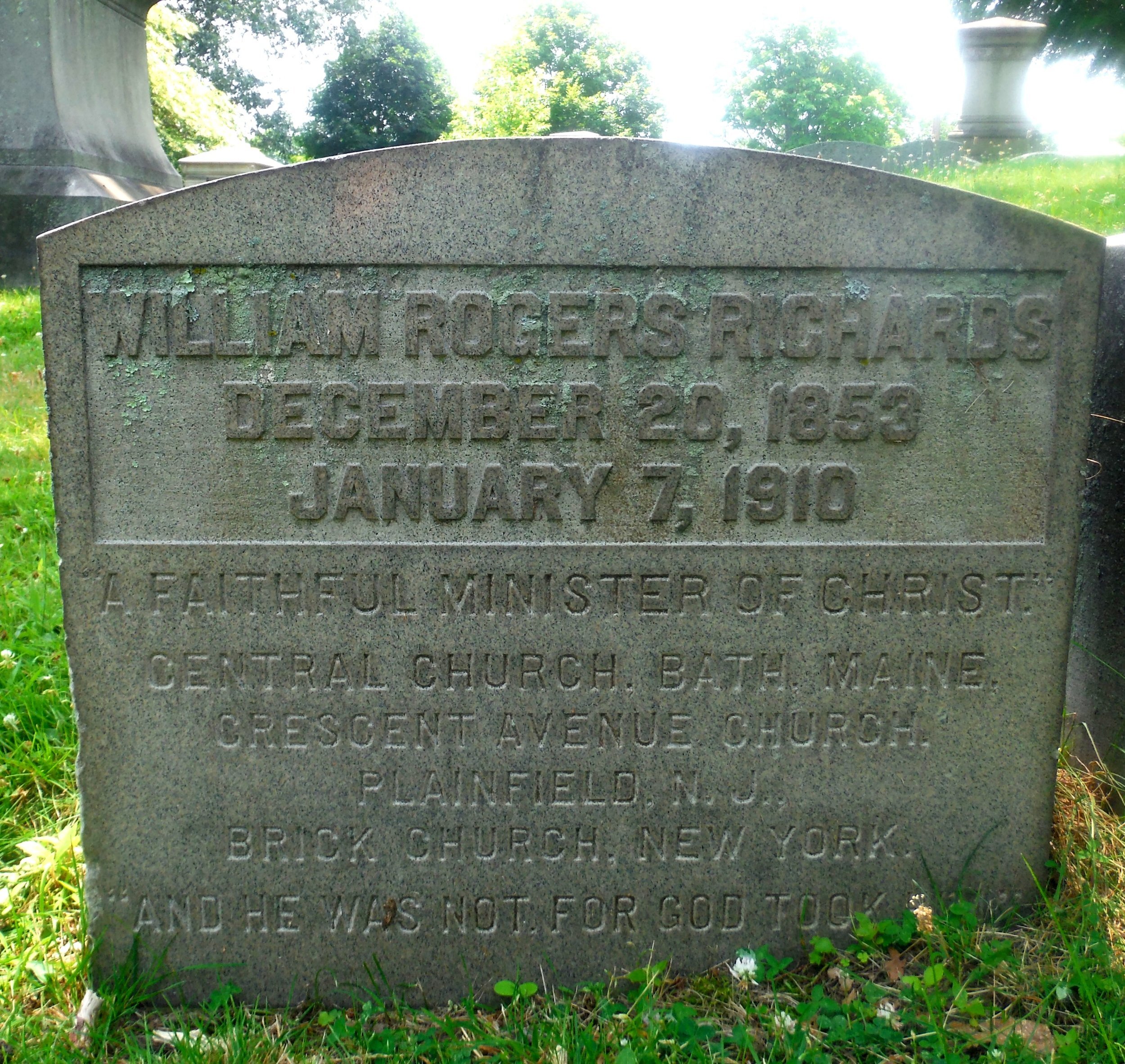 William Rogers Richards is buried at Mountain Grove Cemetery and Mausoleum, Bridgeport, Connecticut.